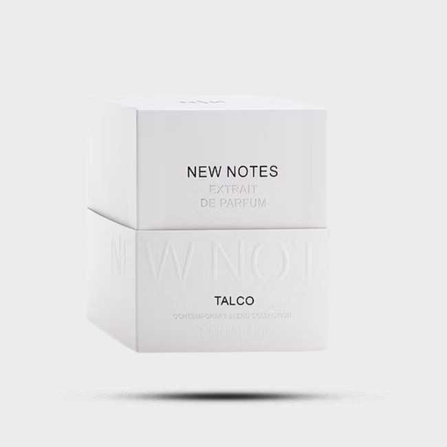 Talco by New Notes offers a tender and nostalgic take on elegance. Opening with the soft, powdery comfort of talc, its delicate bouquet of damask rose, jasmine, and bergamot creates a serene, floral embrace. At its heart, iris and Moroccan rose bloom with creamy ylang-ylang and palisander rosewood, evoking intimacy and warmth. The dry-down leaves a velvety trail of musk, tonka bean, and vanilla over amber and precious woods — a cocoon of timeless sophistication.