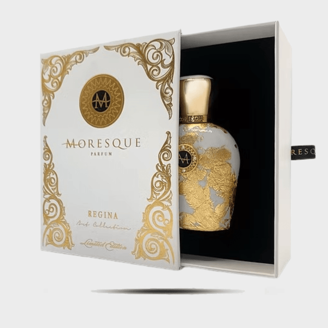 Regina by Moresque is a regal and luminous fragrance that blends citrus freshness, floral elegance, and marine vibrancy. Sparkling bergamot and ylang-ylang open the composition, leading into a heart of jasmine, spices, and sea notes, before settling into a warm and refined base of vanilla, sandalwood, and amber.