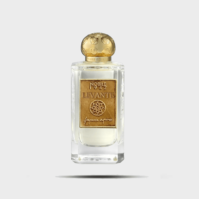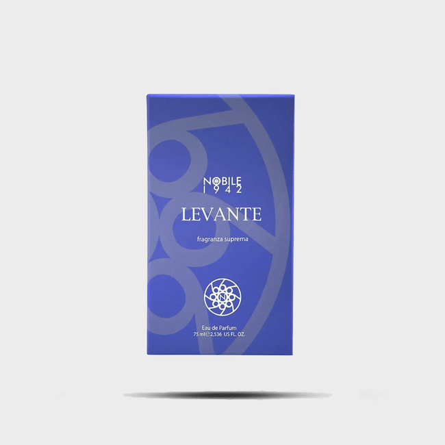 Levante by Nobile 1942 is a luminous oriental-amber fragrance, blending fresh marine accords with a sensual gourmand base. It opens with airy sea notes, white florals, and jasmine, followed by a heart of patchouli and cedar. The dry-down is rich and addictive with vanilla, caramel, benzoin, resins, and musk, evoking warmth and sophistication.