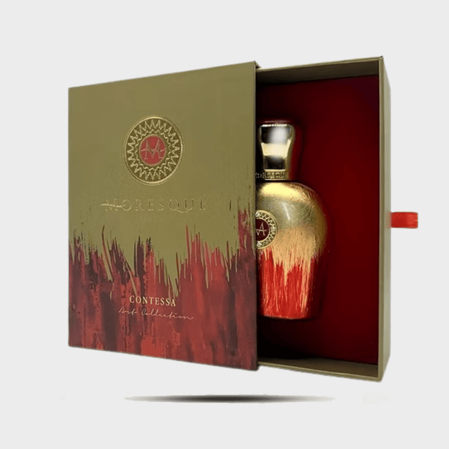 Contessa by Moresque is an opulent and refined fragrance that embodies timeless femininity. Opening with a sparkling blend of spices and citrus, it reveals a heart of elegant florals before settling into a sensual base of vanilla and musk. A scent that radiates both grace and strength.