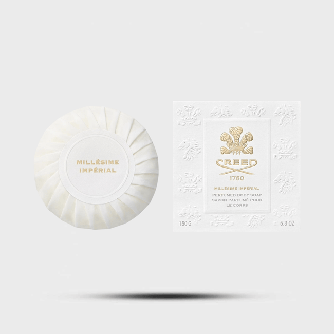 Millésime Impérial Soap by Creed is a luxurious body soap infused with the radiant and sophisticated scent of Millésime Impérial. It cleanses the skin while leaving a soft, lingering trail of fresh citrus, marine notes, and warm woods, evoking timeless elegance and golden opulence.
