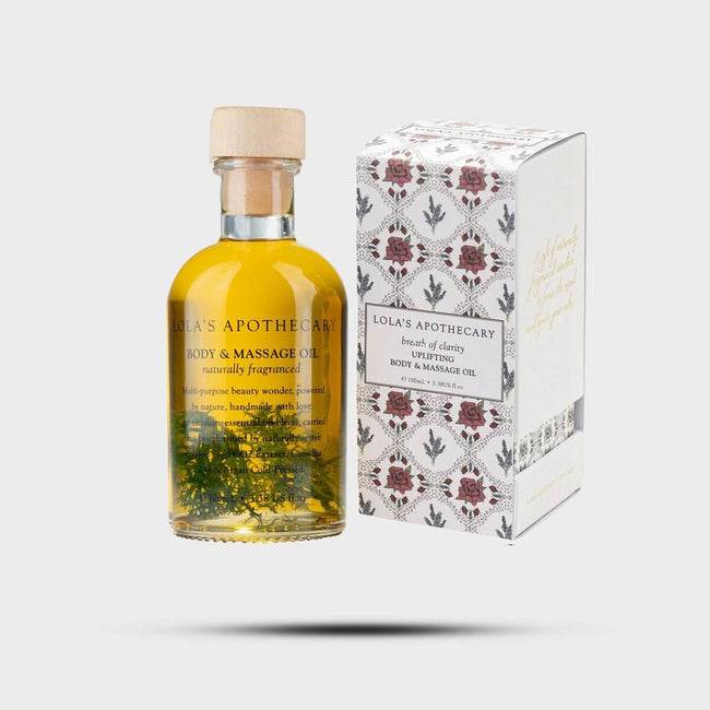 Lola's Apothecary Breath of Clarity Uplifting Body & Massage Oil is a luxurious blend of essential oils designed to uplift the senses and promote a sense of calm and well-being. This soothing oil is carefully formulated with a blend of therapeutic-grade essential oils, including lavender, chamomile, and ylang-ylang, known for their calming and relaxing properties. It can be used as a massage oil to relieve tension and promote relaxation, or applied to the skin as a soothing moisturizer.   Key Benefits:- Uplifts the senses and promotes a sense of calm and well-being   - Relieves tension and promotes relaxation - Soothes and moisturizes the skin - Contains a blend of therapeutic-grade essential oils, including lavender, chamomile, and ylang-ylang - Ideal for massage or as a luxurious body oil    Key Ingredients:- Lavender Essential Oil - Chamomile Essential Oil - Ylang-Ylang Essential Oil Product Details:- Available in: 100ml    - Made in: United Kingdom Who It's For: This Uplifting Body & Massage Oil is perfect for anyone seeking a luxurious and relaxing experience. It is ideal for those who want to unwind after a long day, promote relaxation, or simply enjoy a moment of self-care.