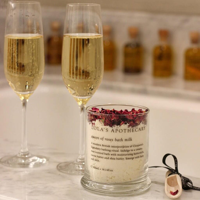 Lola's Apothecary Queen of Roses Bath Milk is a luxurious, creamy bath soak designed to soften the skin and envelop the senses in the delicate fragrance of roses. This indulgent bath milk is infused with real rose petals and rose essential oil, creating a truly romantic and pampering experience. It transforms your bath into a milky oasis, leaving your skin feeling soft, hydrated, and beautifully scented.Key Benefits:- Creates a luxurious and romantic bathing experience - Softens and hydrates the skin - Leaves skin feeling delicately scented with a rose aroma - Transforms your bath into a creamy, milky soak Key Ingredients:- Rose Petals - Rose Essential Oil Product Details:- Available in: 300ml - Made in: United Kingdom Who It's For:This Bath Milk is perfect for anyone seeking a truly indulgent and romantic bathing ritual. It is ideal for those who want to soften their skin, relax their senses, and experience the timeless beauty of roses.