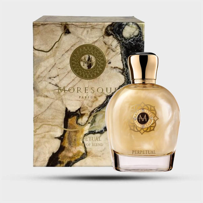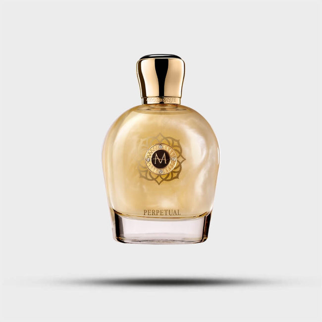 Perpetual by Moresque is a captivating fragrance that balances fruity brightness, floral elegance, and gourmand warmth. Opening with juicy cherry and citrus touched by almond and ginger, it reveals a heart of delicate florals, before melting into a rich base of brown sugar, vanilla, and woods for a scent that feels both sensual and timeless.Fragrance NotesTop Notes: Cherry, Almond, Ginger, OrangeHeart Notes: Iris, Rose, Patchouli, JasmineBase Notes: Brown Sugar, Tonka Bean, Vanilla, Amber, SandalwoodProduct Details- Made in: Italy - Available in: 100ml - Fragrance Family: Oriental Gourmand Who It’s ForPerpetual is for those who desire a fragrance that is indulgent yet refined, weaving playful sweetness with elegant depth. Perfect for evenings, special gatherings, or whenever you want to leave a warm and lasting impression.